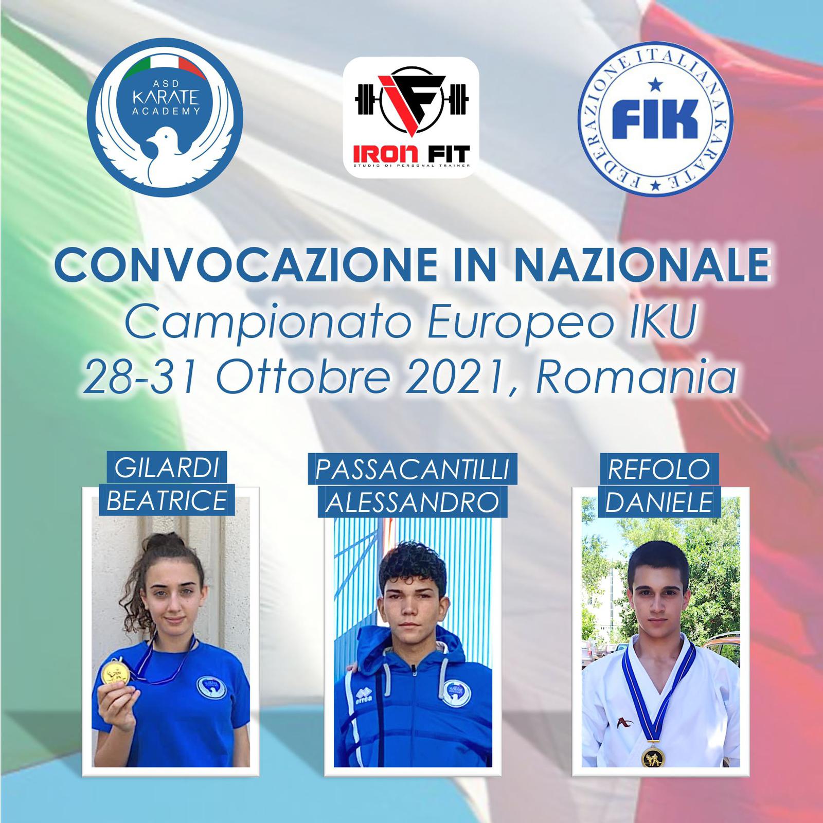 Daniele Refolo, Alessandro Passacantilli e Beatrice Gilardi convocati per rappresentare la nazionale