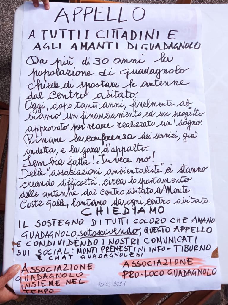 A funestare il sollievo degli abitanti di Guadagnolo, frazione di Capranica e con i suoi 1200 metri centro abitato non comunale più alto del Lazio, la contestazione di gruppi ambientalisti preoccupati per la flora e la fauna della zona. “Noi abbiamo avuto morti su morti di tumore per i tralicci nelle case”, contestano i pochi abitanti rimasti a Guadagnolo, “Sono oltre trent’anni che viviamo con le antenne praticamente nelle case. Il sito ritenuto idoneo dal ministero è il più opportuno, praticamente una radura lontana dai centri abitati”. L’associazione “Guadagnolo Insieme nel Tempo” e la Pro Loco del piccolo centro hanno avviato una sottoscrizione di solidarietà contro certe contestazioni. Il sindaco, Francesco Colagrossi: “Abbiamo il diritto sacrosanto di liberarci dalle antenne”.