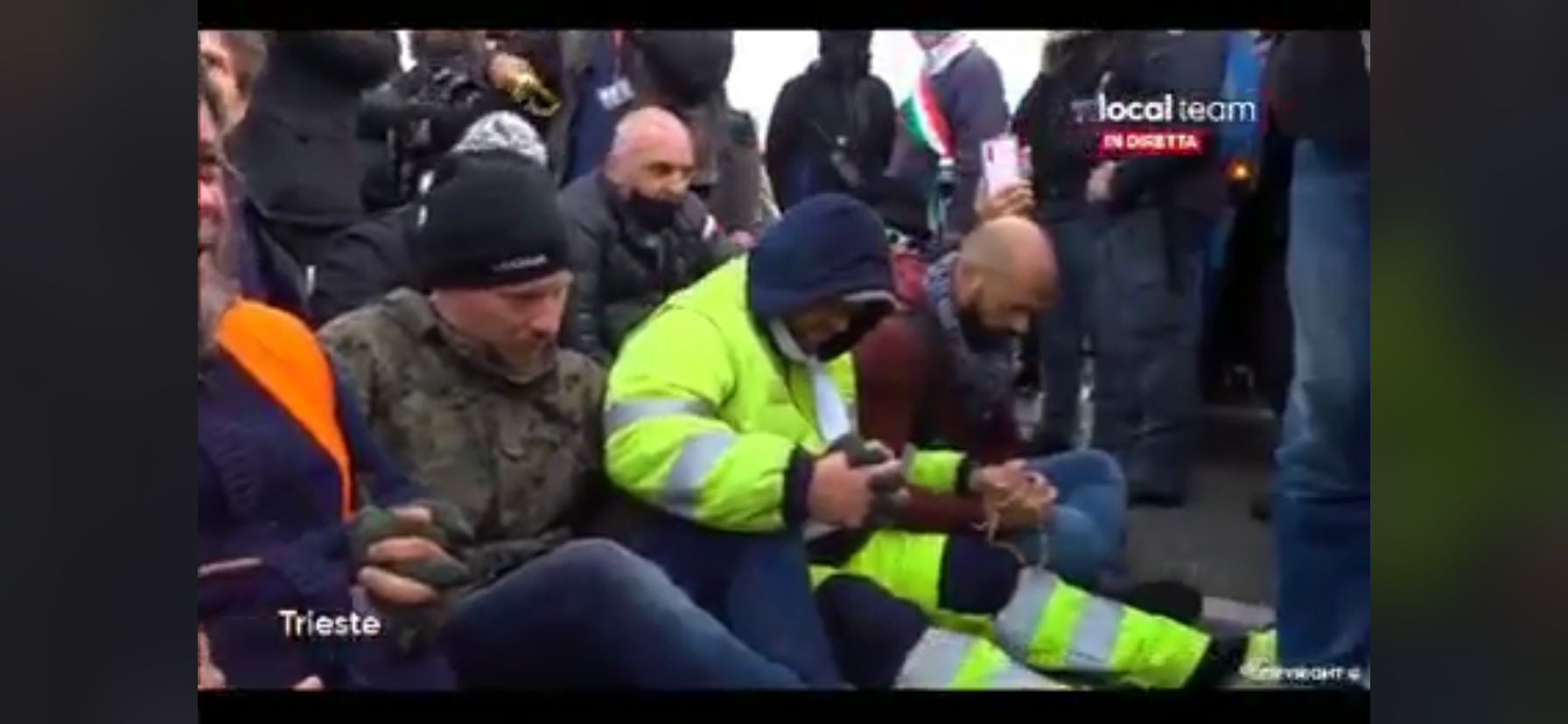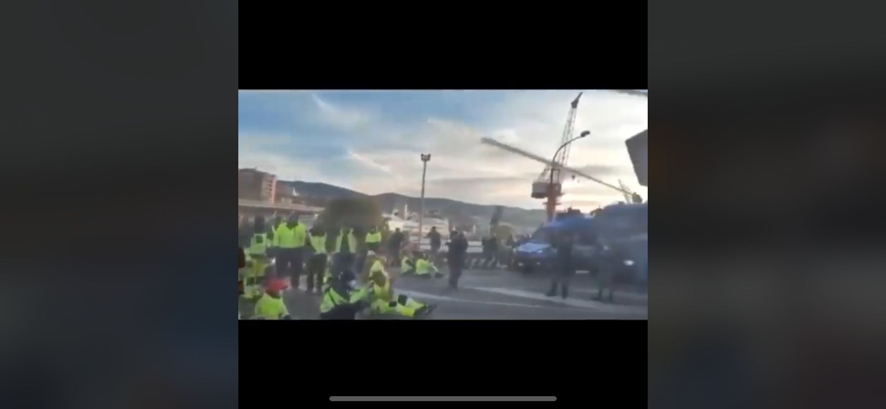 Alcuni portuali si sono inginocchiati. Altri rappresentanti della protesta hanno parlato con le forze dell’ordine presumibilmente per trovare una transizione pacifica. In strada successivamente si sono verificati altri scontri. In queste ore un lavoratore ha accusato un lieve malore, la barriera di agenti allora si è aperta per farlo passare ed entrare nel porto per essere soccorso.