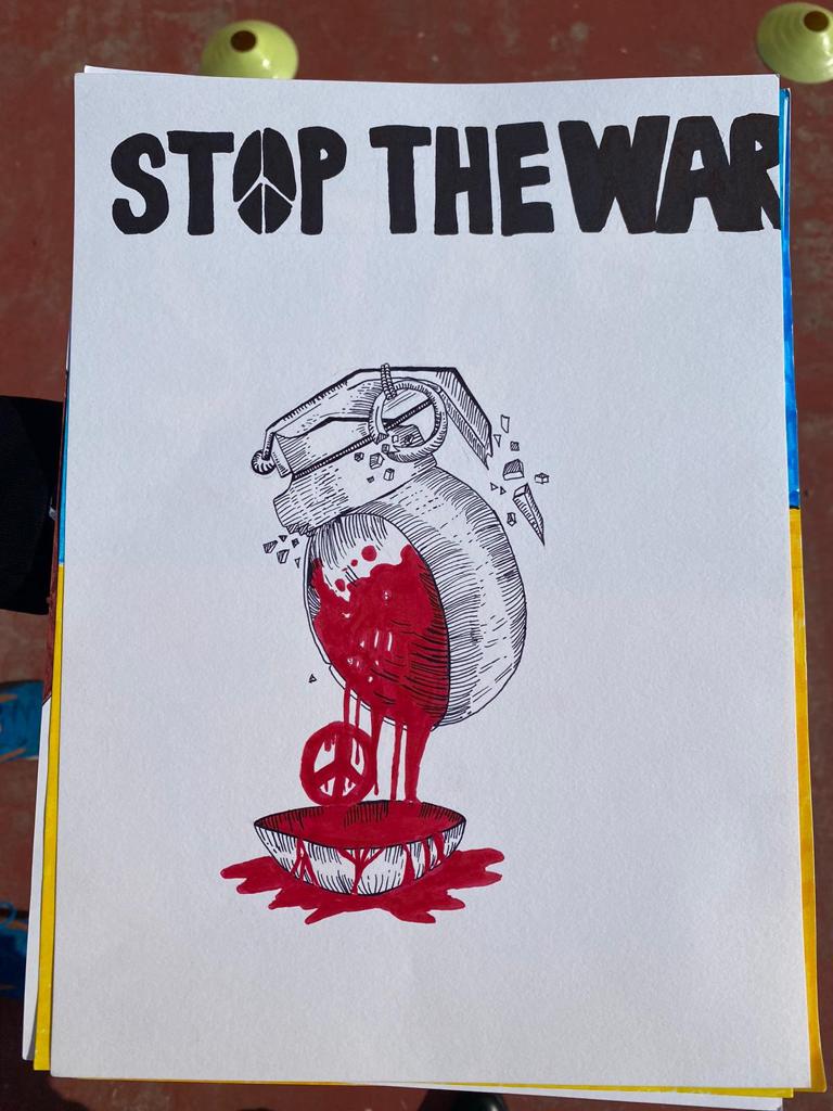 Gli alunni hanno tappezzato anche la piazza centrale con originali manifesti per la pace realizzati in classe.