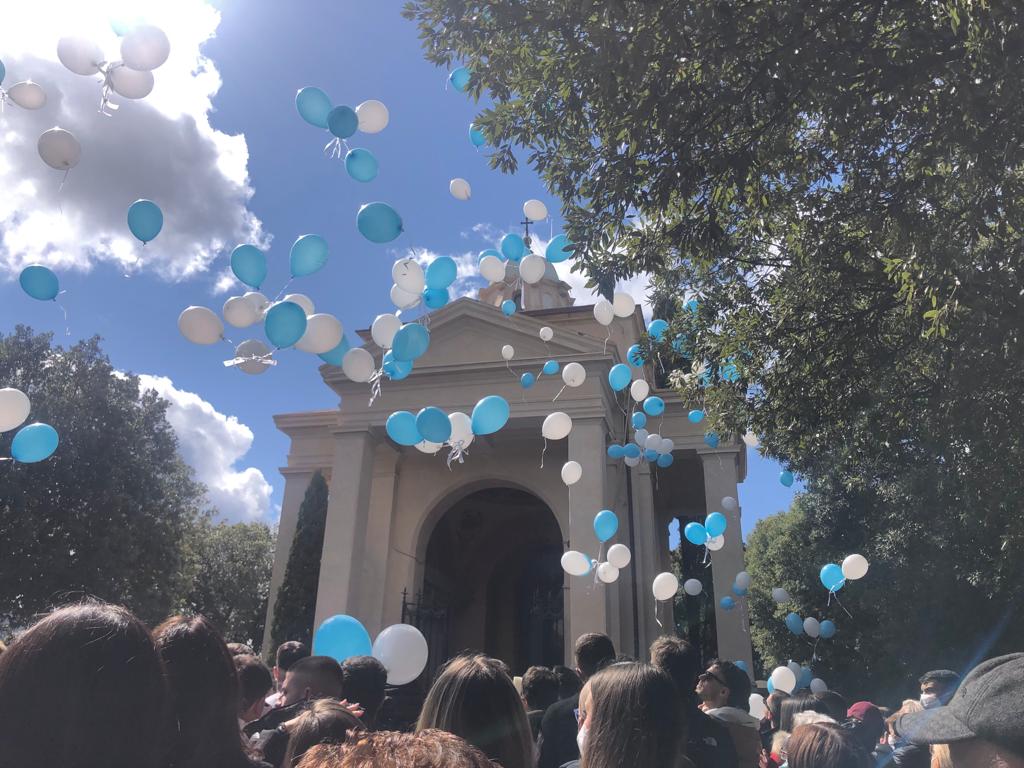 La bara bianca, il carro funebre bianco, i palloncini lanciati al cielo bianchi e azzurri, una corona rossa a forma di cuore. Le vespe allineate in piazza e gli striscioni: “Per sempre il nostro angelo”, “Cavalca il cielo con tutti i suoi ostacoli…Dio ha scelto il migliore”.