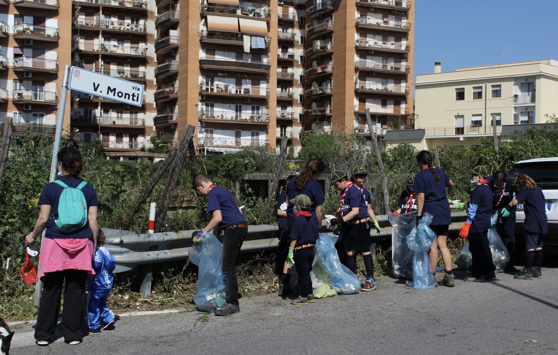 Al lavoro i volontari del Picchio Propositivo, di Plastic free, del Gruppo Scout Agesci Setteville 1 e gli studenti delle classi 1a-1d- 2d-2e e 3a della scuola media Garibaldi, che insieme, da vari “paladini della pulizia”, hanno ripulito marciapiedi, aiuole e giardini raccogliendo quintali di rifiuti. Si sono divisi in gruppi e percorsi diversi per poi ritrovarsi in piazza coi sacchi pieni.