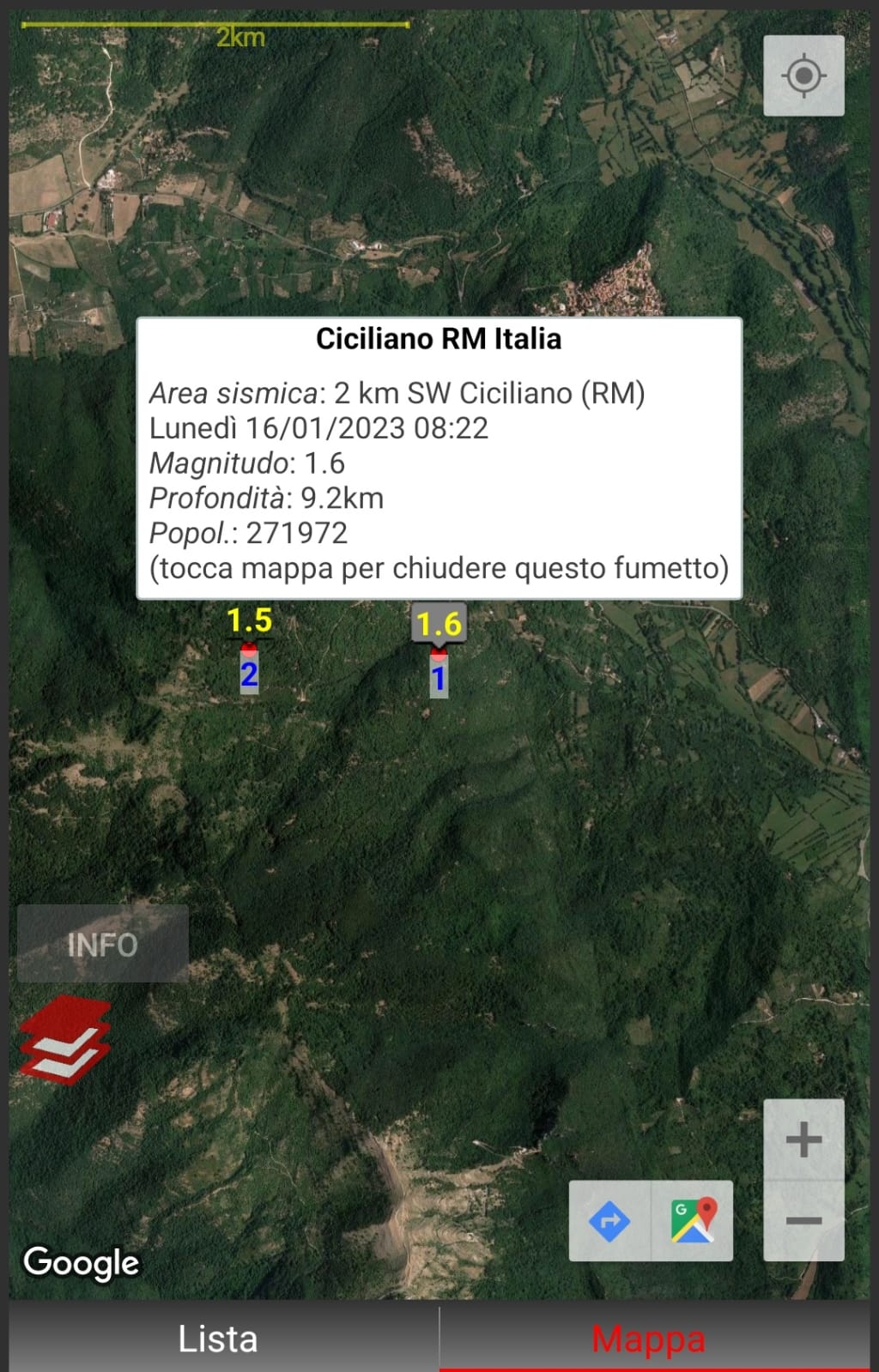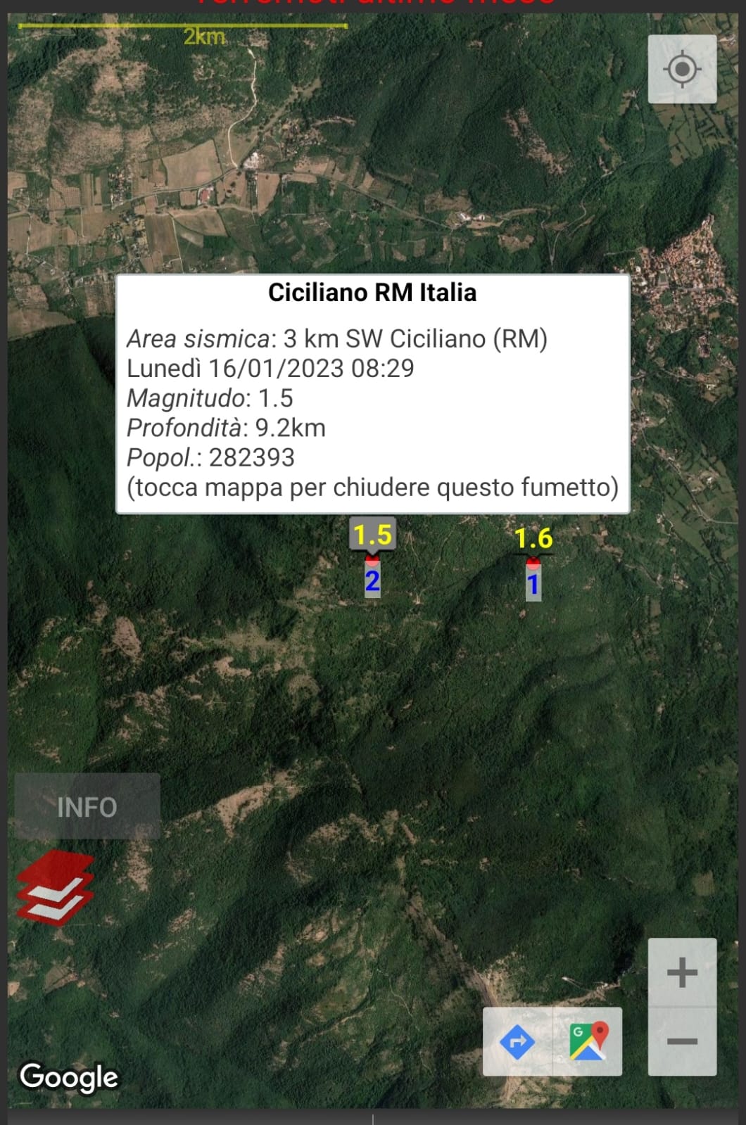 Due lievissime scosse di terremoto oggi, lunedì 16 gennaio, hanno interessato l’area di Ciciliano, già colpita nei mesi scorsi da più piccoli movimenti tellurici. L’istituto nazionale di geofisica e vulcanologia ha rilevato due micro scosse una alle ore 8.22 e una alle 8.29 rispettivamente dell’1,6 e 1,5 della scala Richter. Un movimento avvertito solo da pochi abitanti.