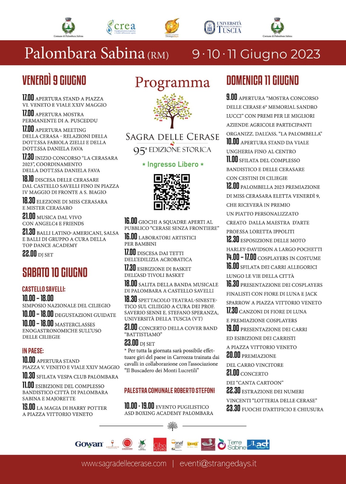 Per ulteriori informazioni e per conoscere le attività collaterali a quelle principali, è possibile consultare la locandina qui di seguito o il sito www.sagradellecerase.com
